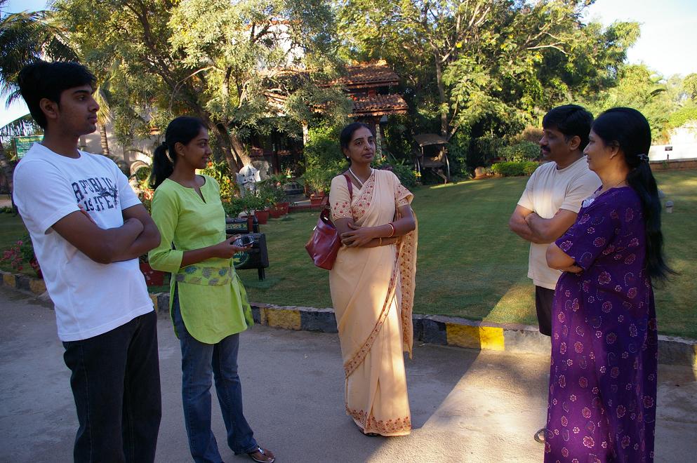 | Murali and his wife having morning chat with Prasunamba and her kids |