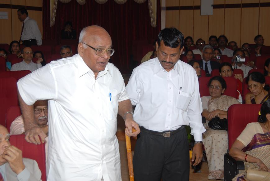 | Prof. Venkiah (Biochemistry) being escorted by Mohan Rao |