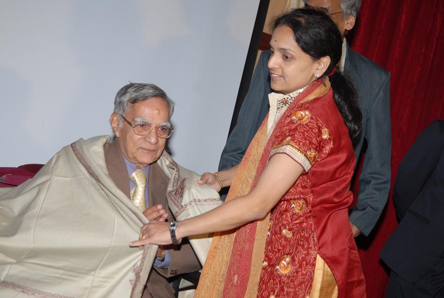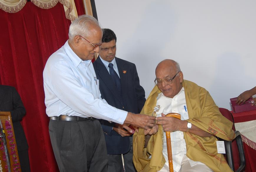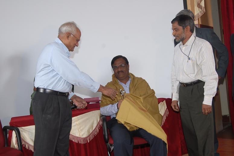 | Prof. Bansilal Wigg (General Medicine) being honoured by Nagaraj Sharma |