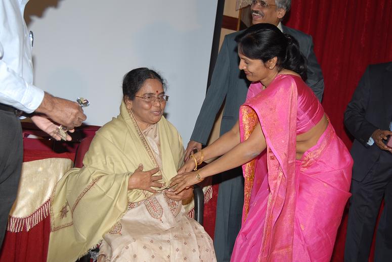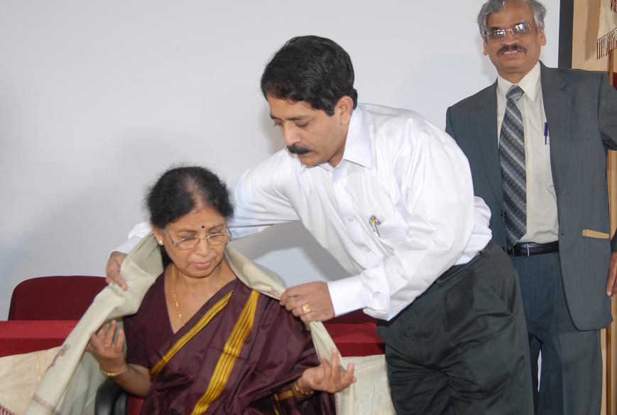 | Prof Vijaya Lakshmi being honoured by Kilambi Srinivas |