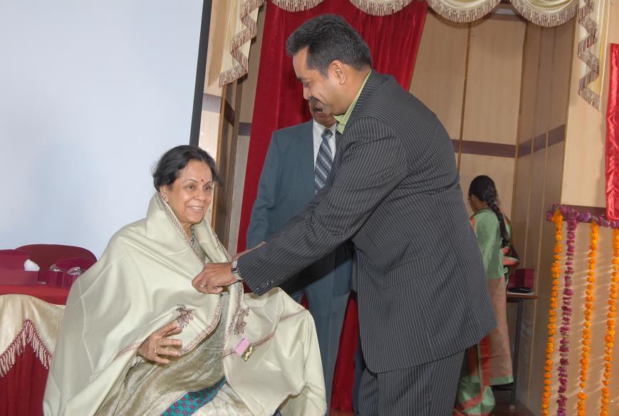 | Prof Kumidini (Physiology) being honoured by Nadeem Ansari |