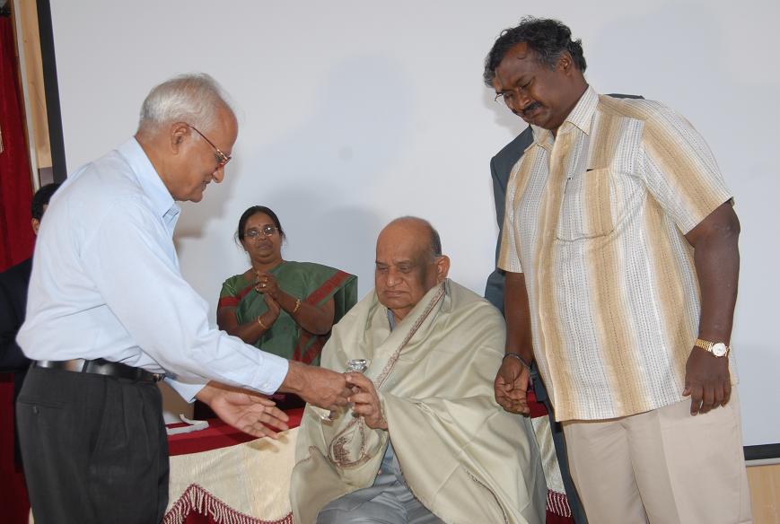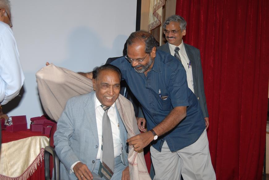 | Prof. D. Raja Reddy (Neurosurgery), the chief guest of the program, being felicitated |