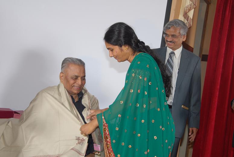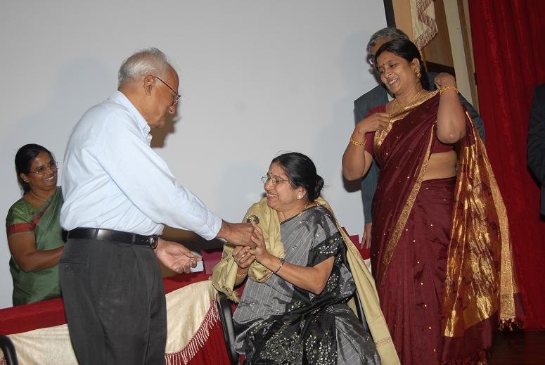 | Prof. P.S. Murthy (Pediatrics) being honoured by Jyotsna |